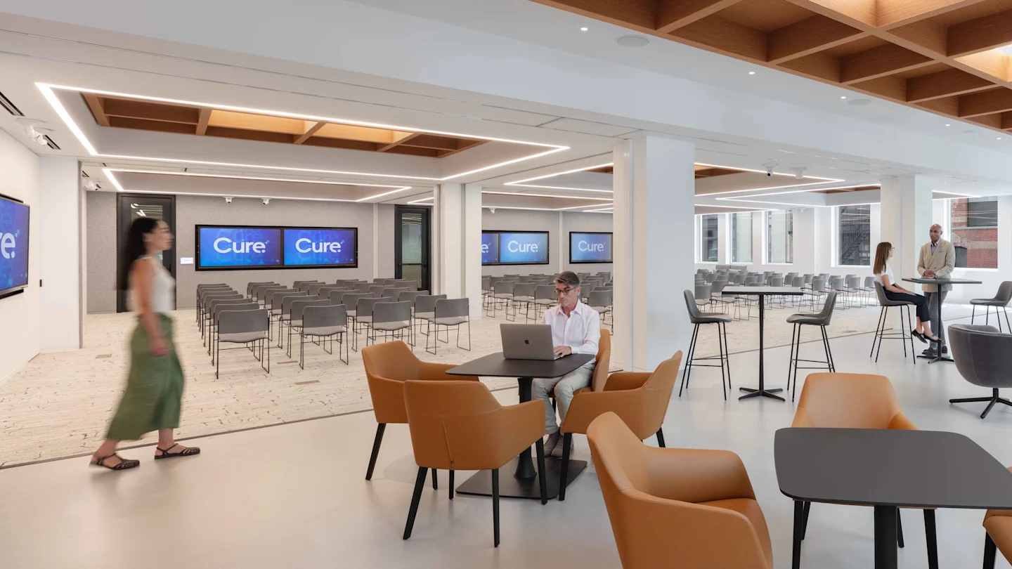 The Cure Education and Conference Center has a flexible, classroom structure with a variety of arrangements to enable meetings of all sizes. Built for the new way of hybrid working, each conference room is outfitted with state-of-the-art technology and supported by its on-site team to offer guests a full suite of planning services, including catering, audiovisual, material design, and publication.