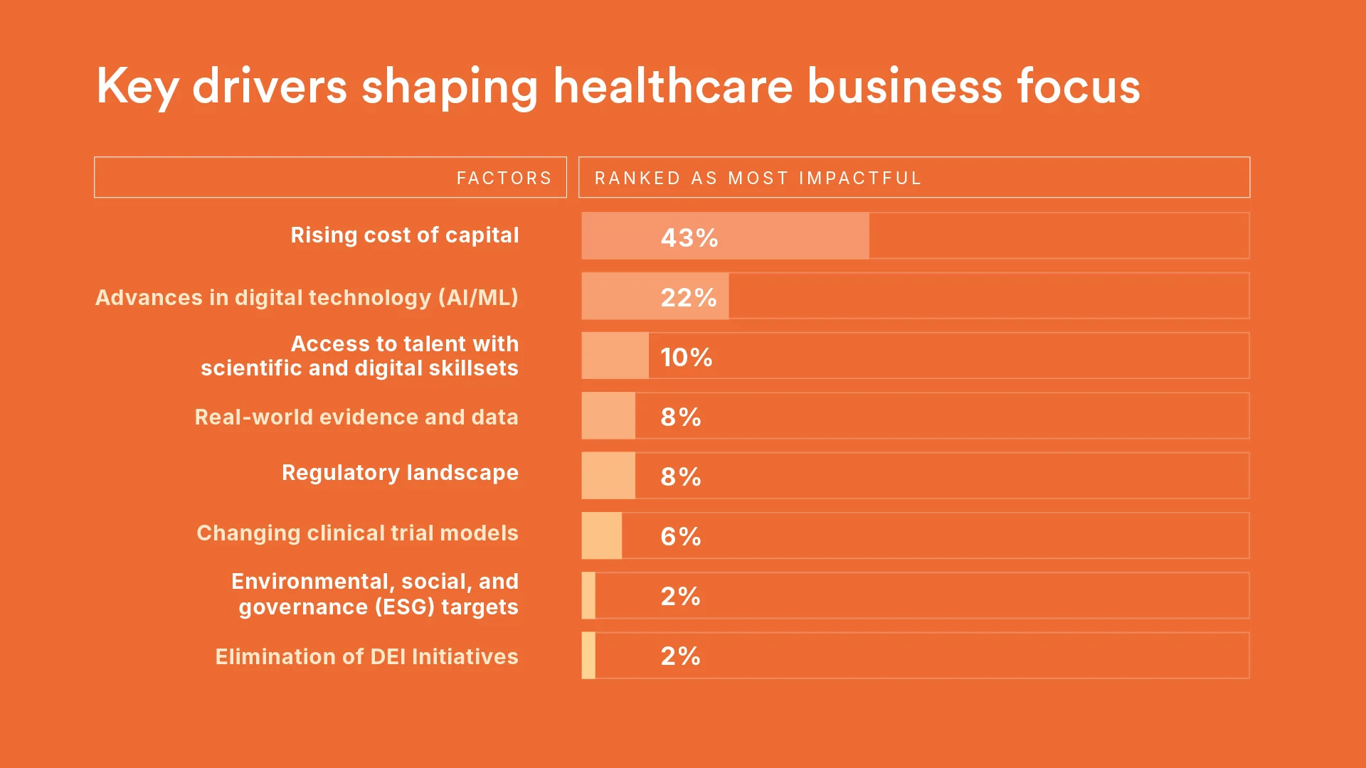 Yet, amid these changes, the spirit of innovation is alive and kicking. Bold ideas still emerge from those determined to build a better future. To meet this moment, healthcare leaders are adapting, and innovators are pivoting. They are leveraging AI and talent to create an innovation advantage, as well as pursuing alternative capital sources, rebuilding talent and rethinking how breakthroughs move from discovery to delivery.